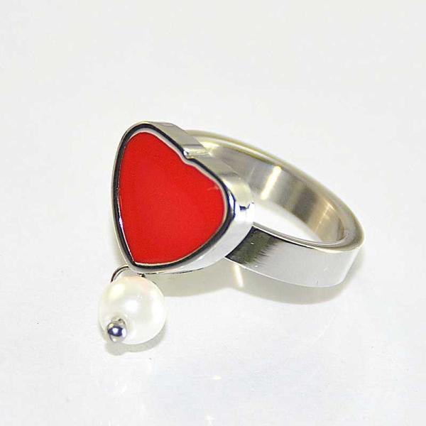 red enemal heart shape stainless steel ring LRX57 Images |